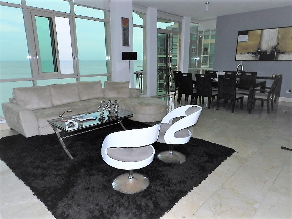 19-9428 af alquile grandioso apartamento en punta pacíficaApartamento amplio e iluminado. ubicado en zona exclusiva de punta pacífica. tres (3) recámaras con sus tres (3) baños internos y baño de visita. cuarto y baño de empleada. un (1) den. dos (2) pa