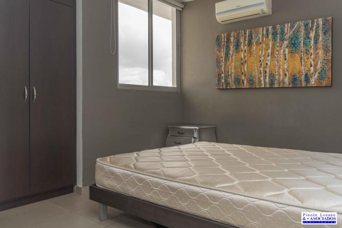 Ph metric, recamara principal con closet y baño completo interno, segunda recamara, un baño completo, sala comedor, balcón, cocina abierta, lavandería, incluye dos estacionamiento. amoblado aparta