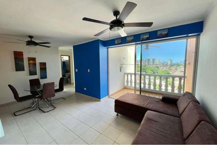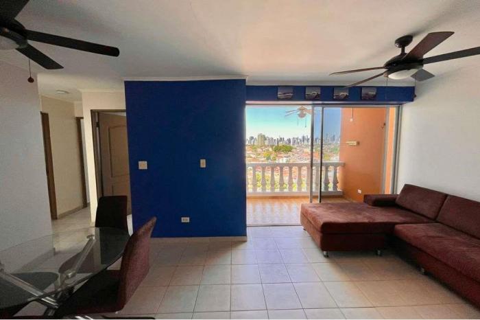 Alquiler de apartamento en ph colonial tower en villa cáceres.Alquila hoy en una de las zonas más céntricas de la ciudad de panamá. este apartamento cuenta con 98 m2 distribuidos de la siguiente forma:- amplia sala/comedor.- balcón con vista panorámica a la ciudad.- 3 habitaciones (la principal con su baño adentro y con aire acondicionado split).- 2 baños.- 2 estacionamientos.- lavandería.- muebles incluidos: sofá, comedor 4 puestos, nevera, estufa de 6 quemadores, calentador de agua, horno y un aire acondicionado split en la habitación principal.ph colonial tower cuenta con portón y garita de seguridad 24/7.¡coordinemos una visita hoy mismo!