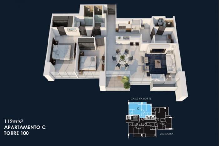 Alquiler de apartamento nuevo, ph loma vistaSe alquila apartamento recién entregado, en ph loma vista, con acceso directo a la vía españa. cerca de hospitales, escuelas, supermercados, plazas y más. se alquila amoblado o vacío con aires acondicionados.este maravilloso apartamento además de amplios espacios, cuenta con acabados de muy buena calidad y áreas sociales con numerosas amenidades, como piscina, sala de cine vip, baño turco, área de juegos para niños y gimnasio.sus características son las siguientes:112 m22 recámaras con opción a 3ra recámara2 bañoscuarto y baño de servicio1 estacionamientoamplia sala y comedorrecámara principal con walking closet