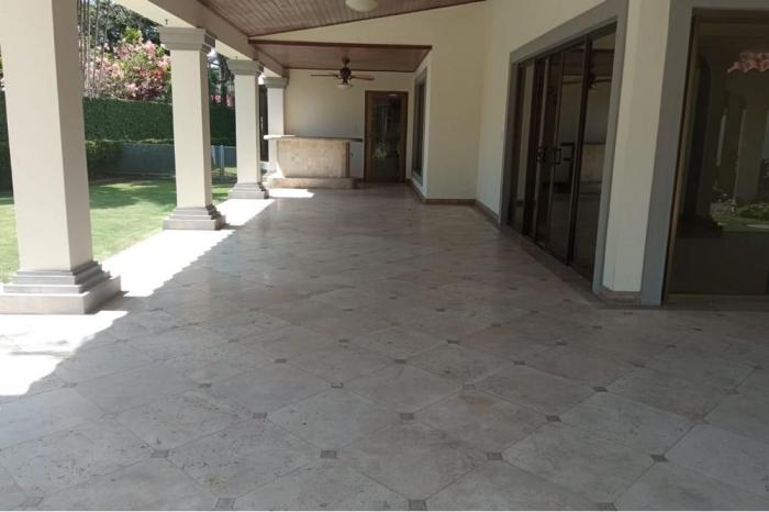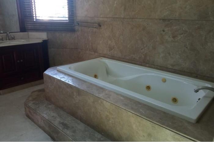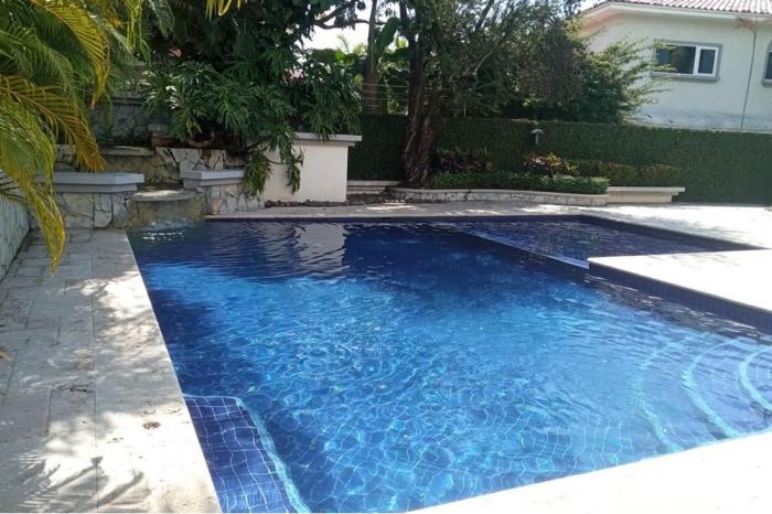 Alquiler de mansión en ph royal pacific, costa del esteHermosa mansión en alquiler en la prestigiosa comunidad de costa del este dentro del residencial privado royal pacific.esta hermosa casa ofrece bellos acabados en pisos de mármol, sobre de granito en la cocina, puertas y muebles de alacena y closets en las habitaciones de madera.cuenta con 641.35m2 de construcción y con una excelente distribución como sigue:4 recámaras con sus baños, medio baño de visitas en el interior de la casa, 2 cuartos con baños para personal de servicio, sala comedor, den, cocina con área de desayunador, terraza techada, balcón, piscina privada, gazebo y baño externo para el área de piscina y terraza. cuenta con estacionamiento para capacidad de 4 autos y una porta cochera en la fachada.renta mensual $8,000