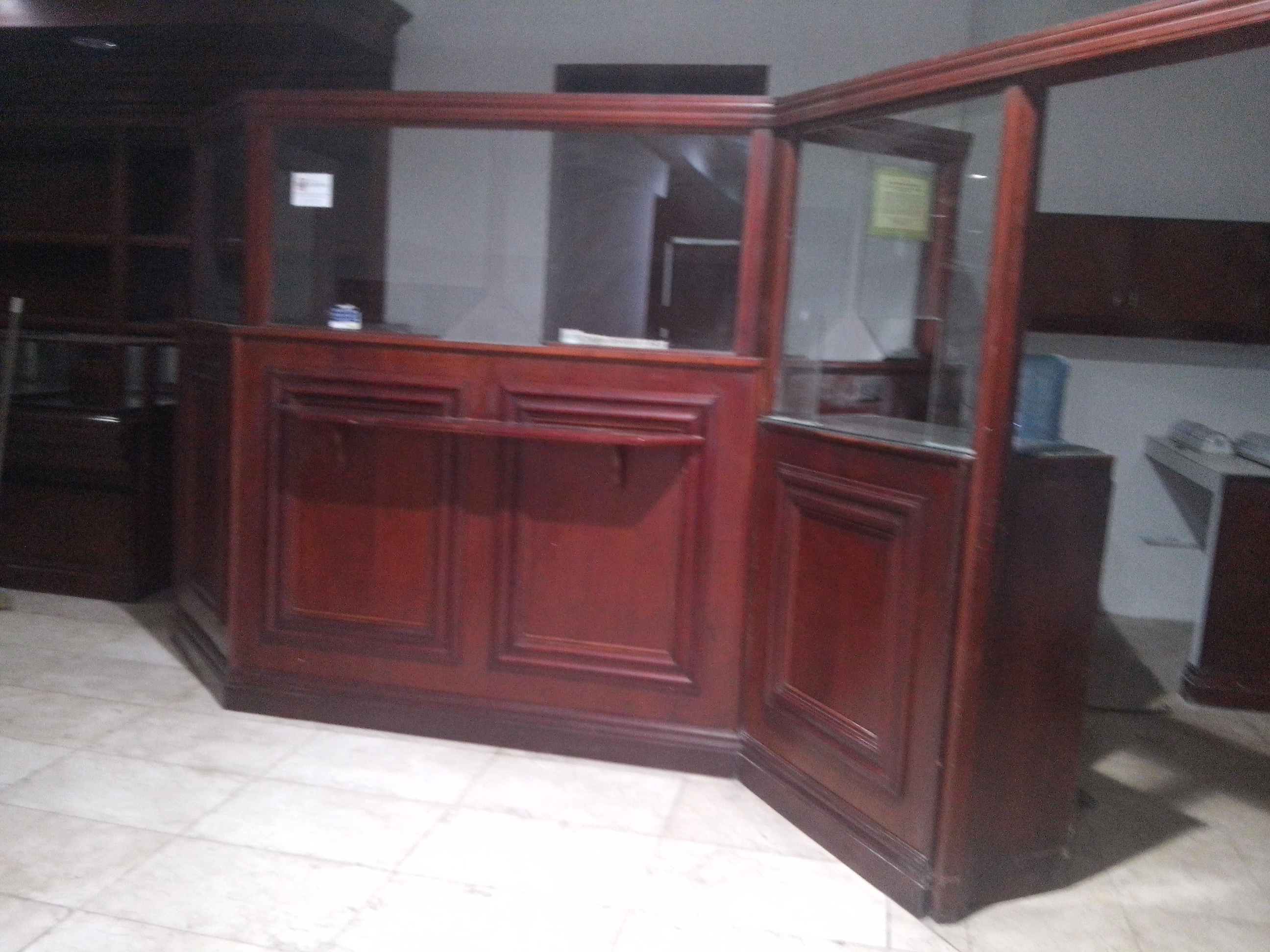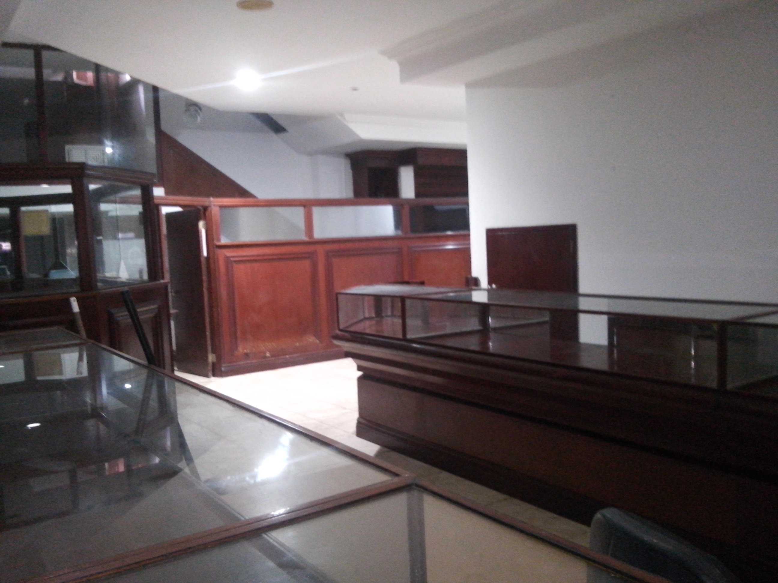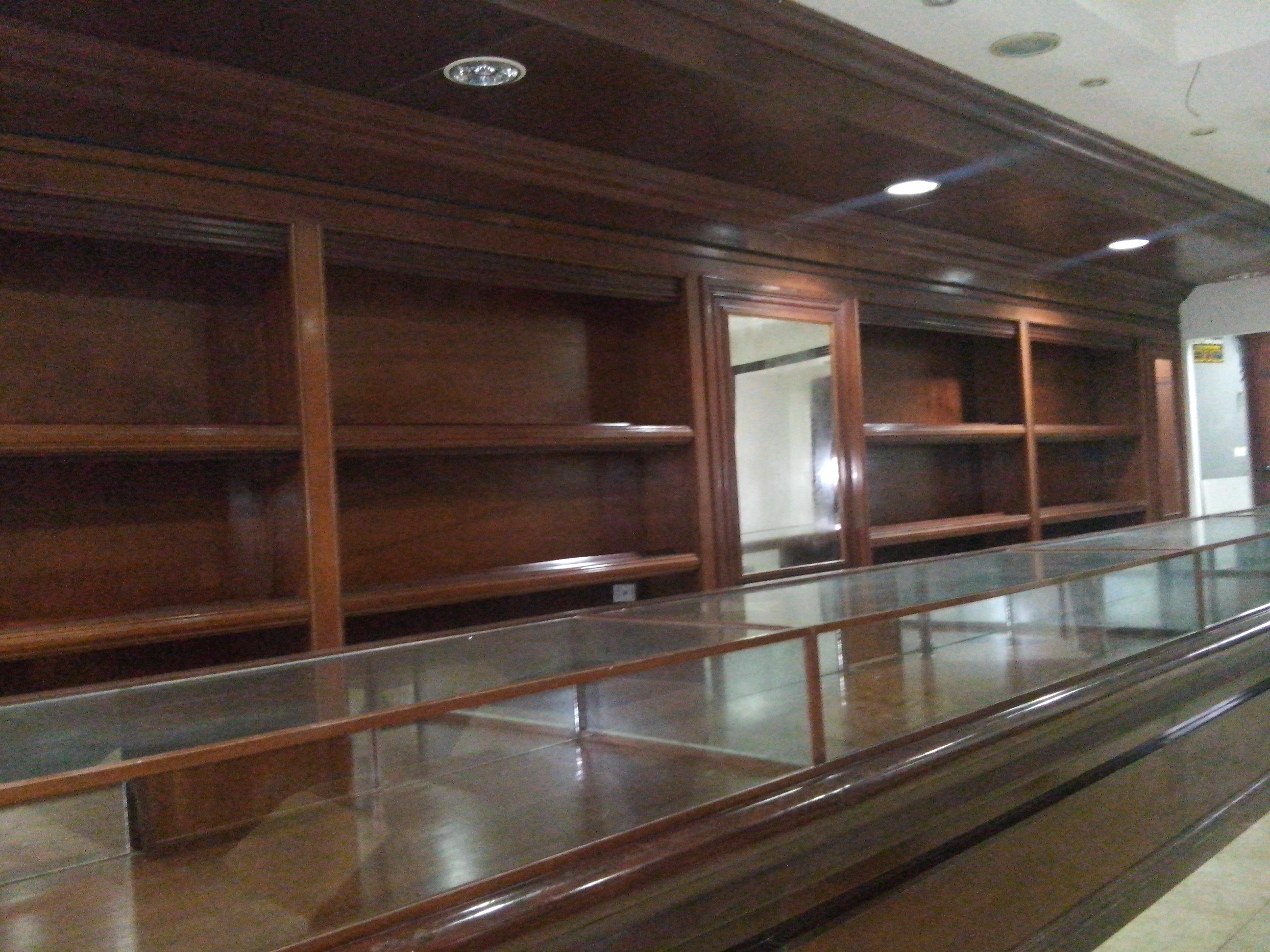 planta baja: vitrinas de madera con vidrio,
