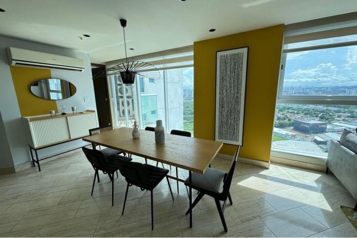 Apartamento en alquiler en costa del este, panamáOfrecemos en alquiler un elegante departamento de 105 metros cuadrados en la exclusiva zona de costa del este. este moderno espacio cuenta con dos habitaciones, proporcionando un ambiente cómodo y acogedor para sus residentes. la cocina abierta está diseñada para integrarse perfectamente con la sala, ideal para quienes disfrutan de un espacio amplio y luminoso.el departamento incluye un puesto de estacionamiento, asegurando facilidad de acceso y seguridad para su vehículo. además, el edificio ofrece un área social completa, equipada con piscina, gimnasio, cine y áreas de parque, brindando múltiples opciones de entretenimiento y relajación sin necesidad de salir de casa.la ubicación en costa del este es una de las mejores de la ciudad, con acceso directo a una amplia variedad de restaurantes, tiendas y servicios. este departamento es perfecto para quienes buscan un estilo de vida sofisticado y activo en un entorno vibrante y bien conectado.no pierda la oportunidad de vivir en uno de los lugares más codiciados de la ciudad, combinando lujo, comodidad y conveniencia en un solo lugar. ideal para profesionales, parejas o familias pequeñas que valoran la calidad de vida y las facilidades modernas.