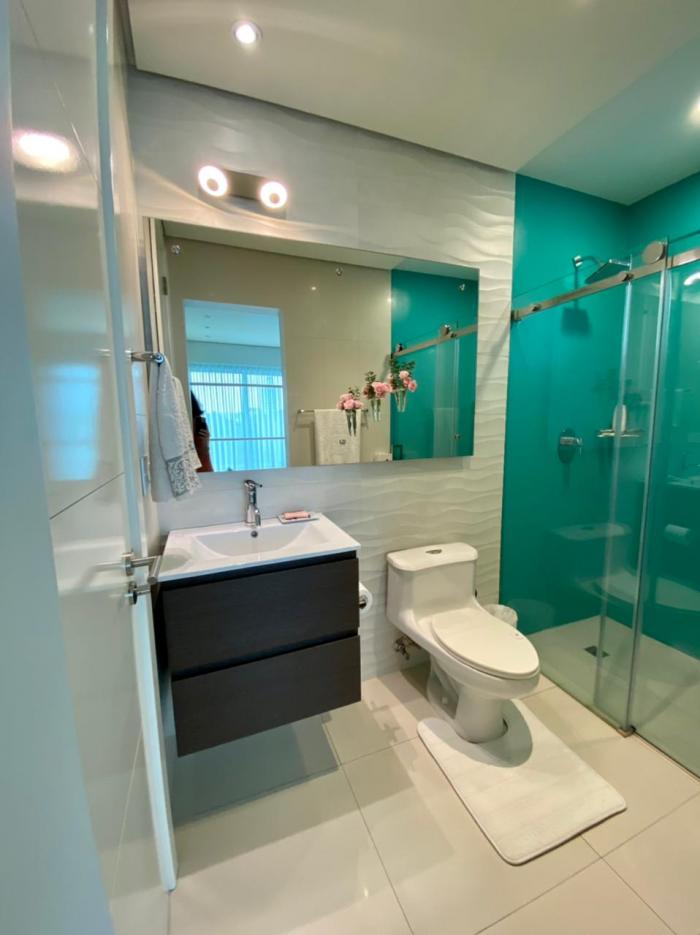 Apartamento en costa del este 2 recamaras Alquilo apartamento totalmente amoblado, 125mts2, 2 recámaras, 2 baños, sala comedor, balcón con vista al parque, cocina equipada, lavandería, 1 estacionamiento, área social con piscina, g