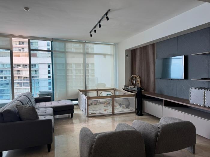 ubicado en uno de los cinco edificios más lujosos de panamá, este espectacular apartamento fue parte de una obra galardonada como la mejor del año. rodeado de todas las comodidades que ofrece punta pacífica, se encuentra a pasos del grand tower, supermercados gourmet, cafeterías, restaurantes, farmacias, panaderías y más.