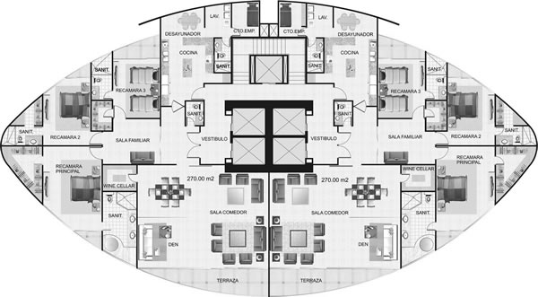 Apartamento frente al mar- costa del este 291.50 m2 3 recámaras 3.5 baños amplia sala-comedor den 3 estacionamientos depósito piso de mármol en las áreas comunes