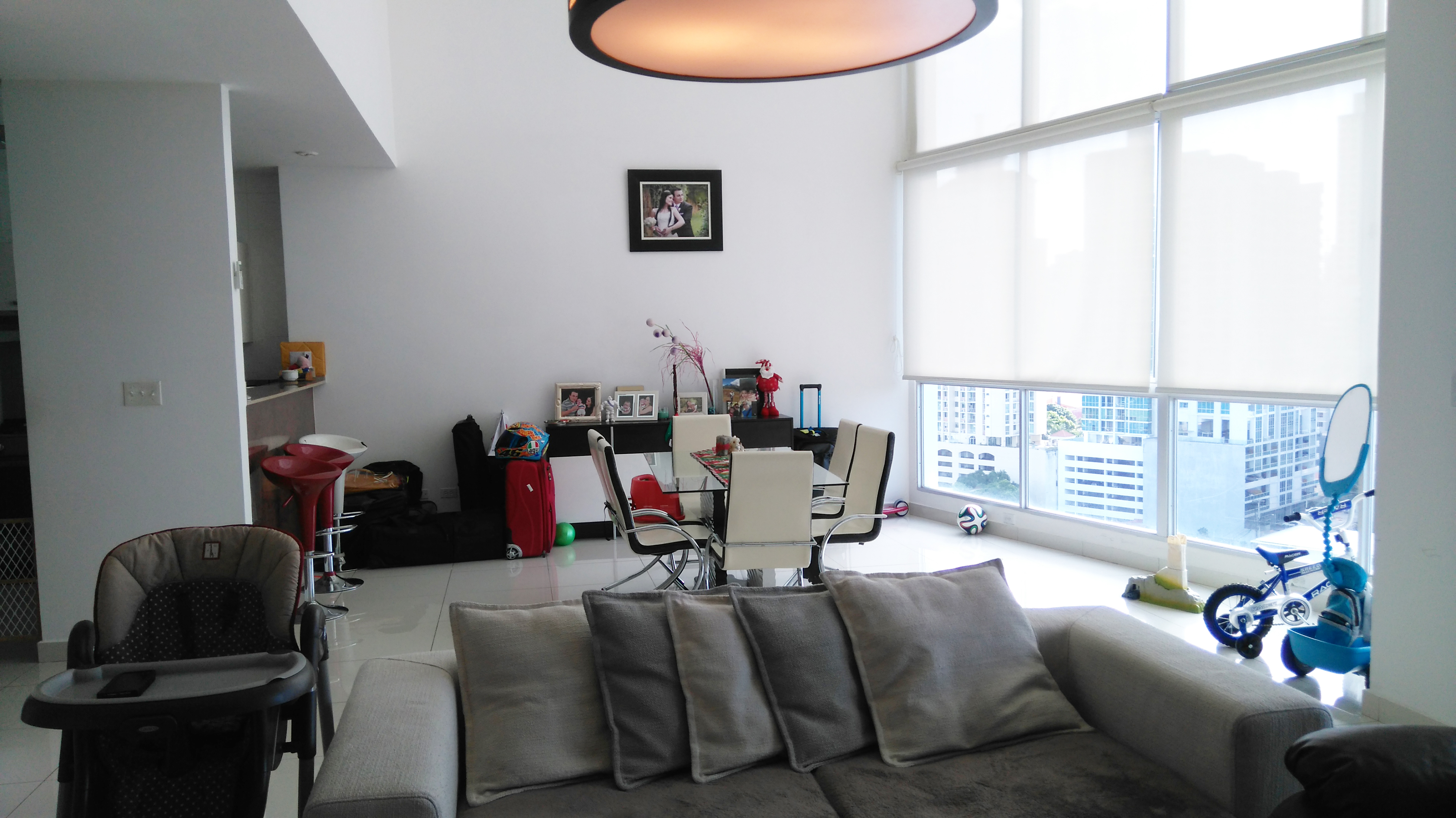 Apartamento tipo loft de doble altura en park loft primer piso: sala comedor amplio, medio baño, cocina abierta con sobre de granito, Área de lavado cerrado, balcón, dos estacionamientos t