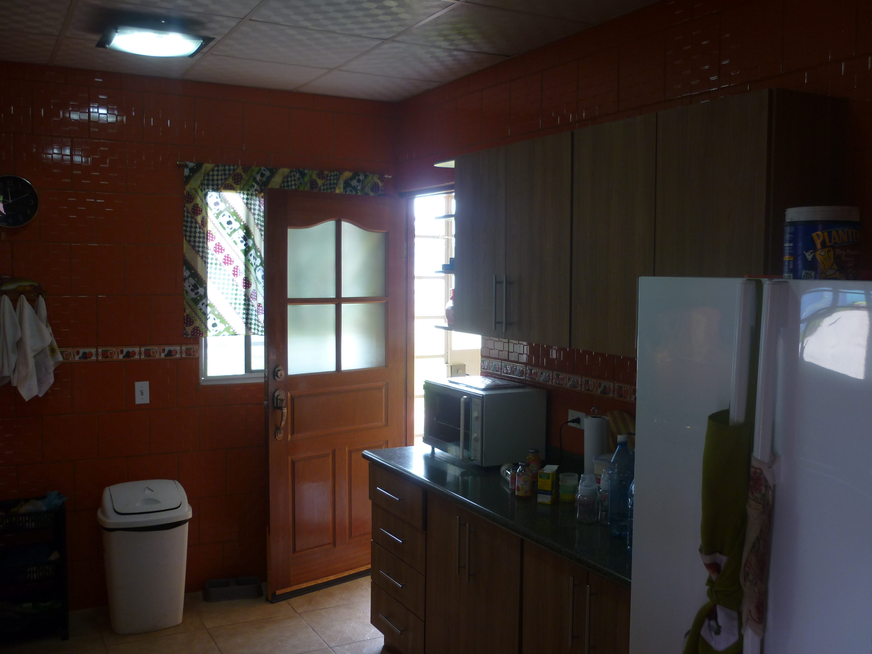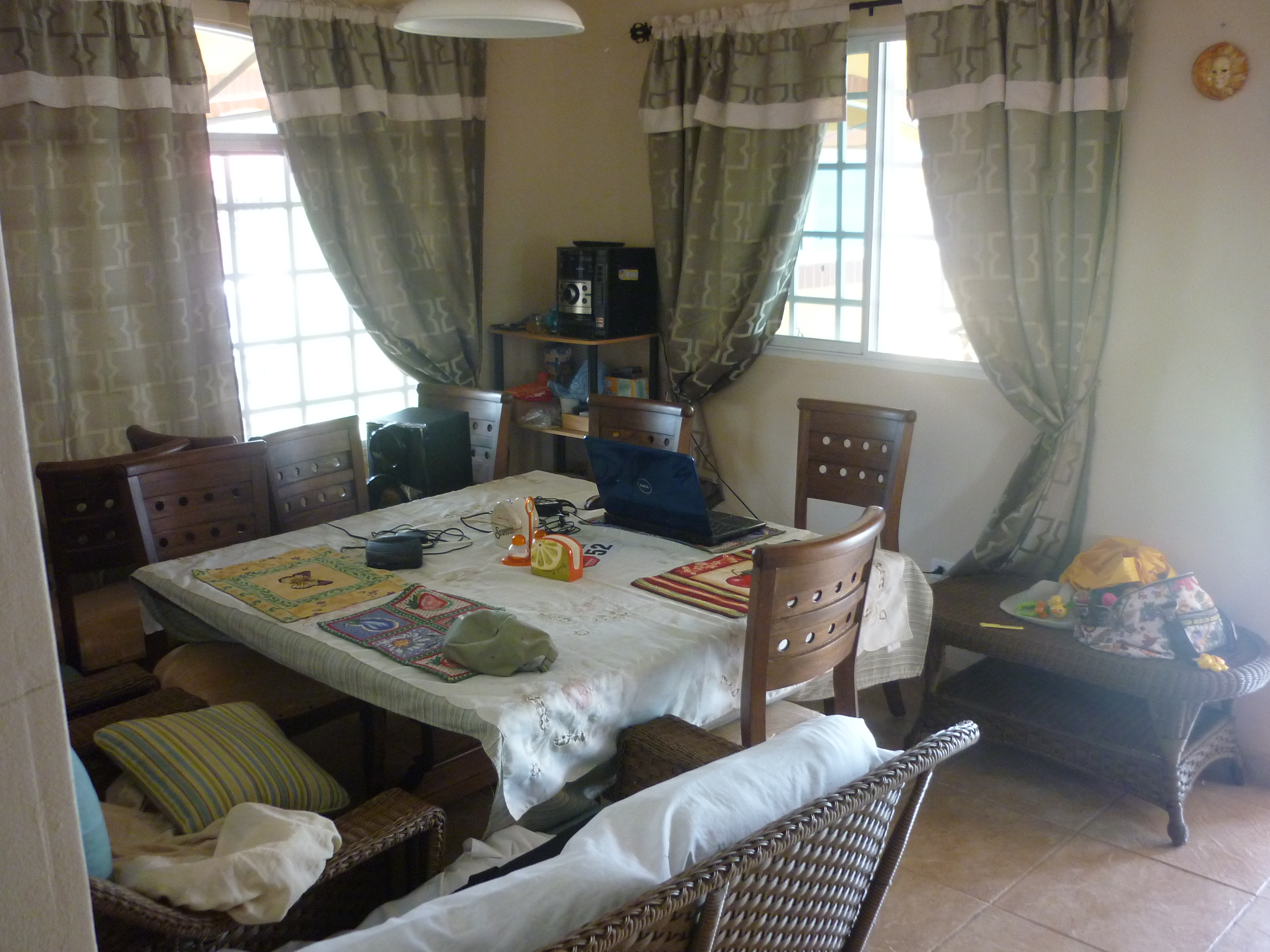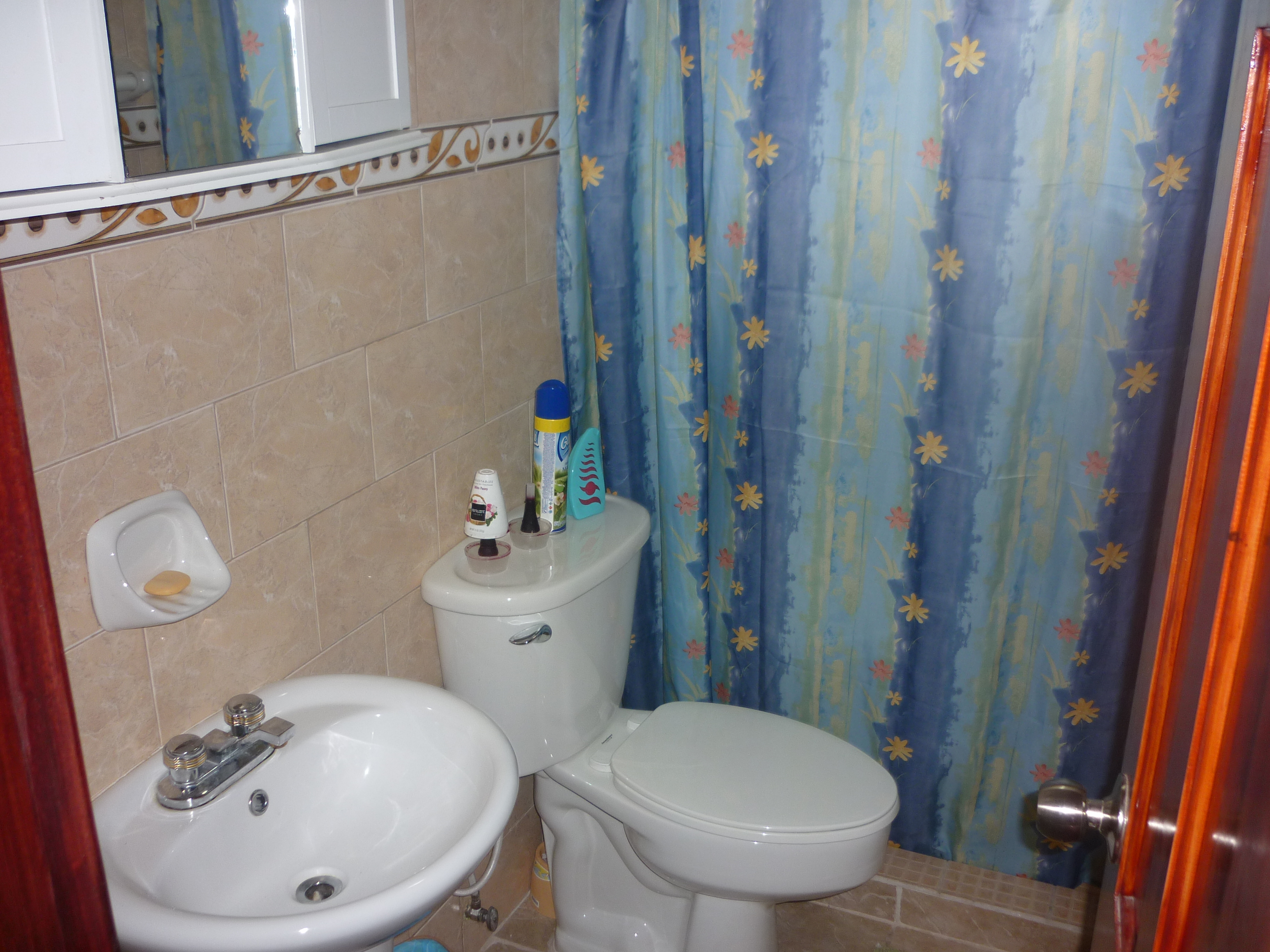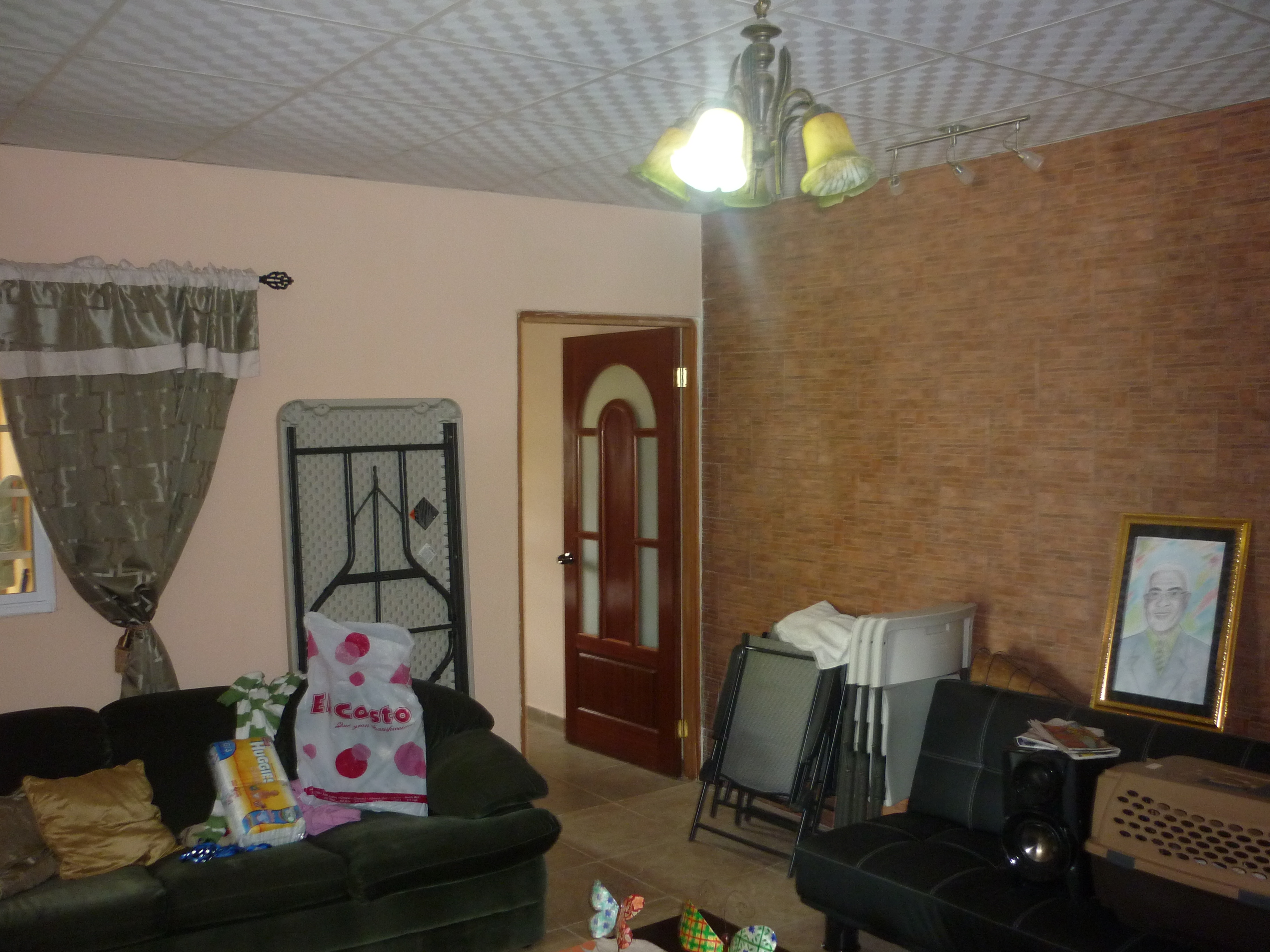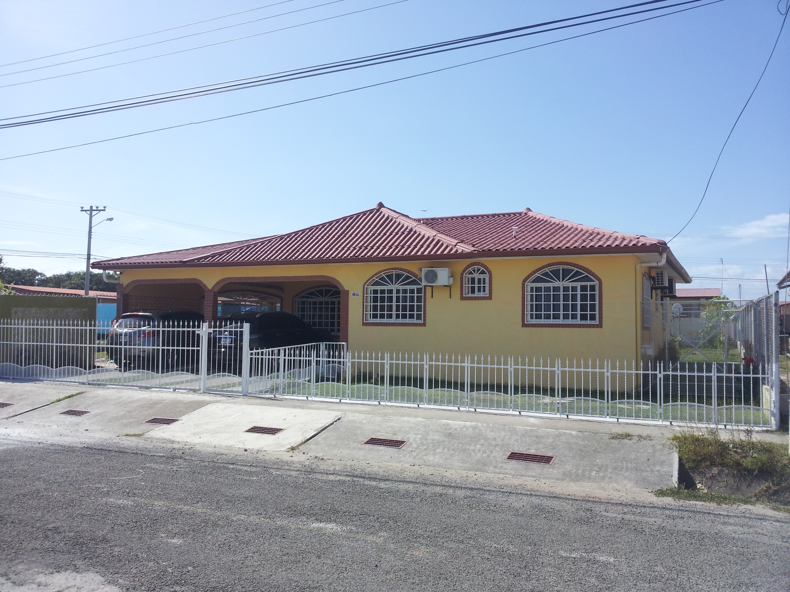 Casa en esquina de 4 recámaras, 2 baños internos con paredes revestidas de azulejo, 1 baño externo revestido con azulejos, sala, comedor, abanicos de techos en recámaras, terrazas y rancho, amplia