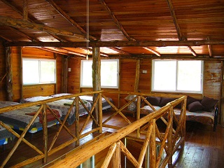 Two-story log cabin style house, 5 bedrooms, ranch, social area and large garden, located in the