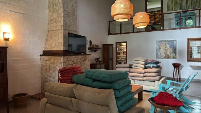 la casa está diseñada para brindar comodidad y espacios ideales para el entretenimiento. la amplia sala y comedor con chimenea son perfectos para disfrutar del clima fresco de montaña. las terrazas en dos lados de la casa permiten una excelente conexión con el entorno natural.