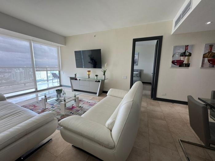 vive en uno de los rascacielos más icónicos y lujosos de panamá. este espacioso apartamento te ofrece vistas impresionantes desde el piso 46 y la comodidad de un hogar completamente equipado.