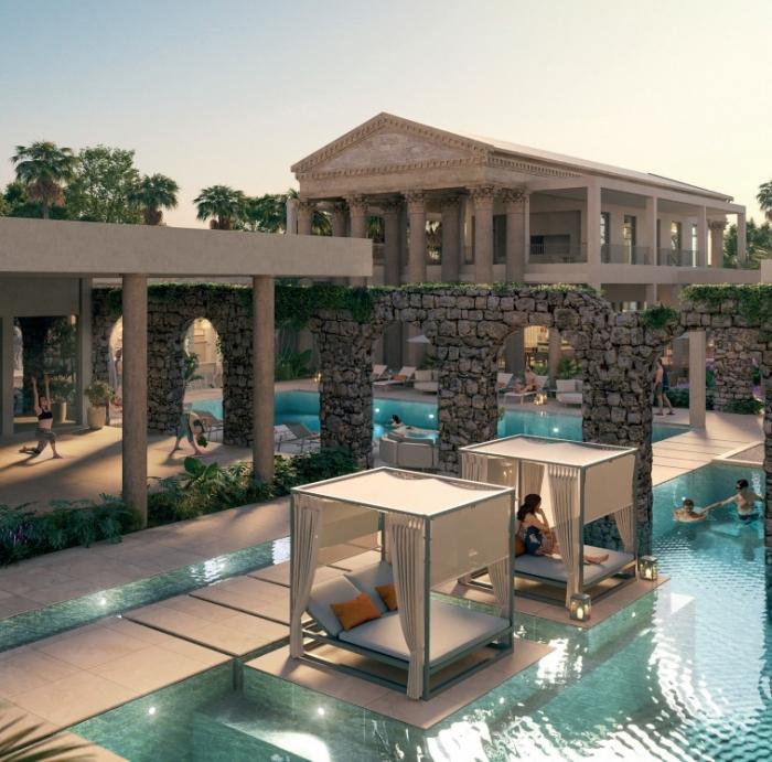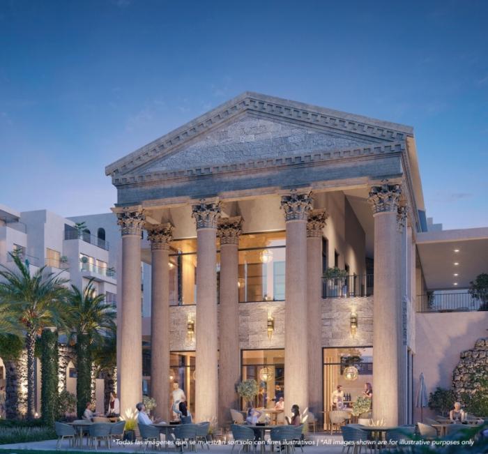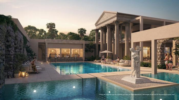 PoseidoniaEn poseidonia residences fusiona la majestuosidad del estilo clásico con el lujo contemporáneo en el caribe. camina por jardines inspirados en los clásicos, rodeado de columnas dóricas y detalles que recuerdan las villas históricas, todo mientras disfrutas del cálido sol caribeño.
