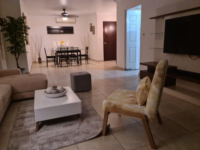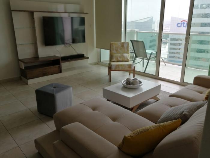 Punta pacífica alquilo apartamento 165m2 3 recámaras $1,650.00Alquilo acogedor apartamento amoblado y línea blanca, 165mts2, 3 recámaras, 3 baños completos, medio baño para visitas, cuarto y baño para doméstica, sala comedor amplios, cocina equipada