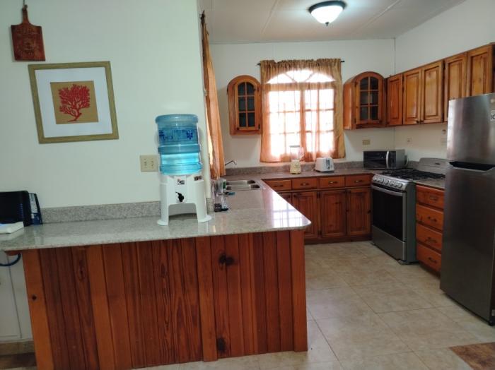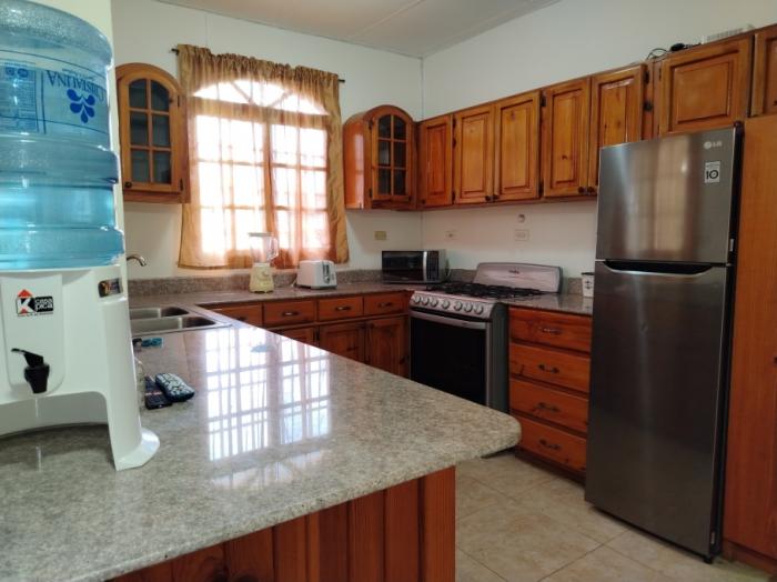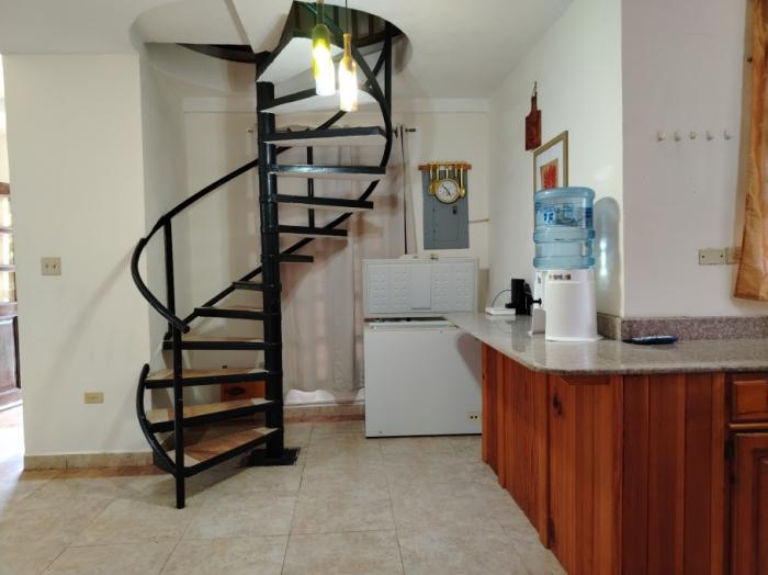 disfruta de una sala de estar y comedor bien definidos, separados para brindar un ambiente ideal tanto para el descanso como para recibir visitas. la cocina de concepto abierto está totalmente equipada con estufa de 4 quemadores, refrigeradora, microondas e internet de alta velocidad, perfecta para cocinar y mantenerse conectado.