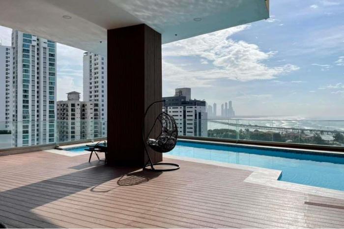 Se vende apartamento en coco del mar, panamáSe vende moderno apartamento de 122 m2 ubicado en coco del mar. el apartamento está distribuido en 3 habitaciones, 2 baños, cocina abierta, balcón con amplia vista al mar. tiene 2 puestos de estacionamiento y 1 depósito.edificio moderno y poco tiempo de construcción. cuenta con área social completa, piscina con vista panorámica al mar, gimnasio y salón de fiesta.