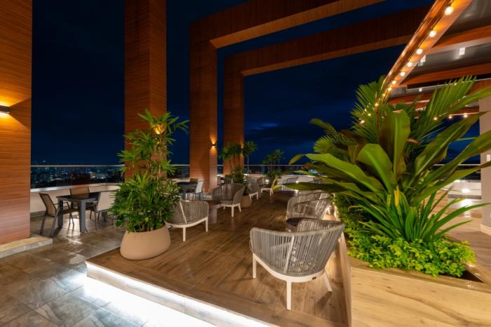 entre sus amenidades se encuentran piscina para adultos y niños, gimnasio, salón de eventos, área de juegos infantiles interior y exterior, salón de entretenimiento, cancha deportiva múltiple y un sky garden. además, el proyecto incluye greenwood plaza, un área comercial con restaurantes, cafeterías, farmacia, guardería y más, todo a pocos pasos de los apartamentos.
