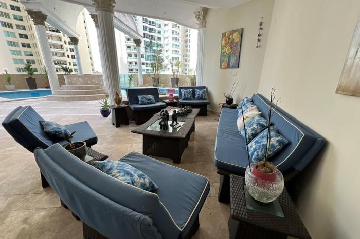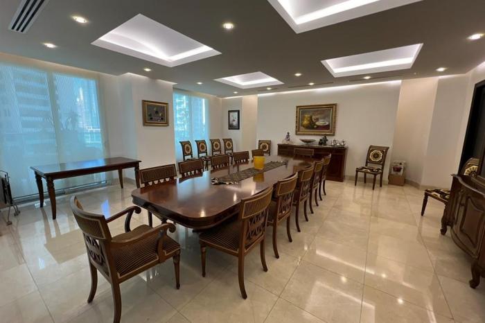 Se vende apartamento en punta pacificaBienvenido al lujo sin igual en punta pacífica, ciudad de panamá. este espectacular apartamento de 1100 m2 de pura elegancia redefine el estándar de vida sofisticado. con una distribución cuidadosamente diseñada, este hogar cuenta con tres amplias habitaciones, cada una con su propio baño y walking closet, brindando privacidad y comodidad incomparables. la cocina kosher es un oasis culinario, mientras que la sala y el comedor crean un espacio acogedor para la vida diaria y el entretenimiento. el den familiar, con un baño completo, ofrece versatilidad al poder transformarse en una cuarta recámara según tus necesidades. además, disfrute de la practicidad de una segunda cocina, cuarto y baño de servicio, así como tres habitaciones para choferes o personal de servicio en el área de estacionamientos. con cinco espacios de estacionamiento y un depósito, la conveniencia está garantizada. pero las verdaderas joyas de esta propiedad son las impresionantes vistas al mar desde todos los balcones, permitiéndole sumergirse en la serenidad del océano desde la comodidad de su hogar.disfrute de la vida al aire libre en la amplia terraza con piscina y bar, creando el escenario perfecto para reuniones sociales o momentos de relajación. además, todas las habitaciones tienen acceso directo a balcones, fusionando sin esfuerzo el interior con el impresionante entorno marino.el edificio, equipado con amenidades de clase mundial, ofrece una experiencia de estilo de vida exclusiva. desde la piscina y el gimnasio completo hasta las canchas de tenis y baloncesto, cada día es una oportunidad para disfrutar del lujo y la comodidad. celebre eventos especiales en el salón para fiestas o déjese cautivar por el majestuoso lobby que te transportará a un mundo de opulencia. este apartamento no es simplemente un hogar; es una declaración de lujo sin concesiones en uno de los destinos más prestigiosos de panamá. viva la experiencia única que te espera en cada rincón de esta residencia excepcional en punta pacífica.