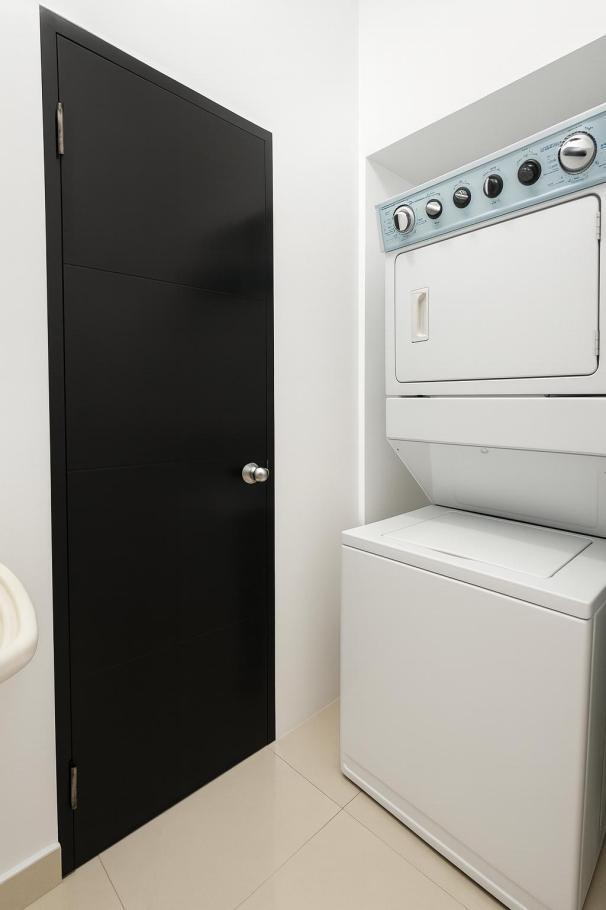 línea blanca completa incluida: nevera, estufa, lavadora/secadora y aires acondicionados.