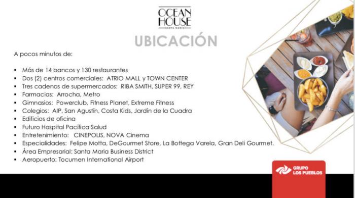 Se vende apartamento en santa maria cod#20-5514 vc #panamaComplejo residencial de lujo con exclusiva vista a el oceano pacifico y al campo de golf profesional de 18 hoyos concebido por la reconocida firma nicklaus design. pisos y topes en marmol, cuarzo y po
