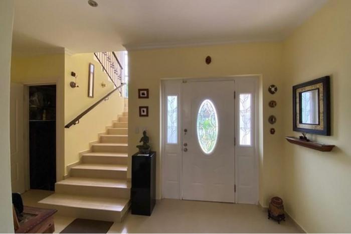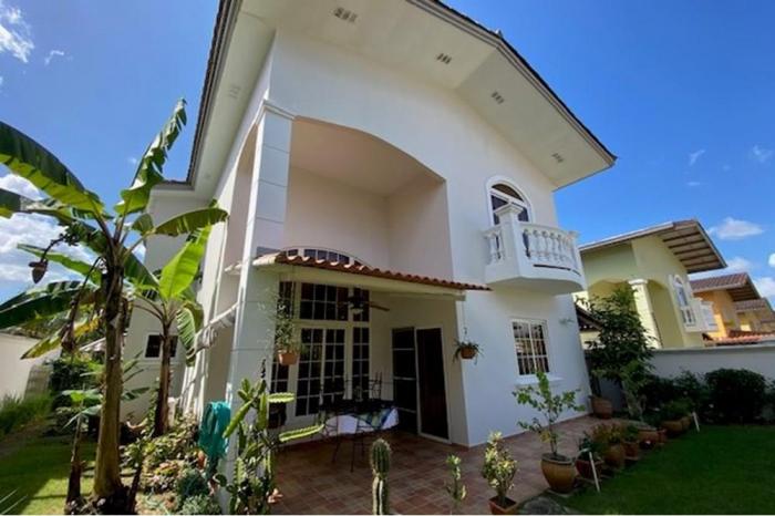 Se vende casa en rainforest village - ancónSe vende casa en rainforest village de 348.32 m2 de construcción y 450 m2 de terreno.la casa consta de 2 niveles, planta baja y planta alta.la planta baja contiene internamente el hall de entrada, sala con parte de techo a doble altura y gran ventanal, comedor, cocina, recamara de visitas o estudio con baño completo y baño de visitas (1/2 baño) con doble acceso (desde casa y desde jardín); depósito bajo escalera totalmente transitable. externamente y completamente techado contiene: terraza posterior; lavandería y sector tanques de agua (1200 galones de agua en total); hall de entrada exterior; estacionamiento para 4 vehículos: 2 techados y 2 puestos al descubierto; camineras y jardines.la planta alta contiene la escalera con descanso semi circular; sala de estar intimo o family room con barandal y vista hacia la sala de planta baja y ventanal; habitación secundaria 1 con su baño; habitación secundaria 2 con su baño y balcón; habitación principal con wolking closet, baño con 2 lavamanos y 2 regaderas y amplio balcón.conjunto residencial consta de 99 casas en tres calles principales, es totalmente cercado por muros y privado, con doble garita y seguridad 24 horas.el residencial p.h. residencial las huacas de la urbanización rainforest village, mantiene cercas en todo el perímetro, además de entrada urbana especialmente diseñada para el área, la cual mantiene una garita de seguridad las 24 horas con intercomunicador a las viviendas, área social con cancha para deportes, parque de juegos infantiles, servicios sanitarios y salón de fiestas; además de área abierta con senderos y jardines, de igual forma cuenta con estacionamientos de visitas. además posee un super tanque de agua, planta de tratamientoprecio por avalúo $ 505,505 vs. precio oportunidad $ 469,000