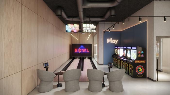 lobby, yoga, gym, business lounge, spa, bowling, cinema, piscina infinity, sky gol, basquetball.