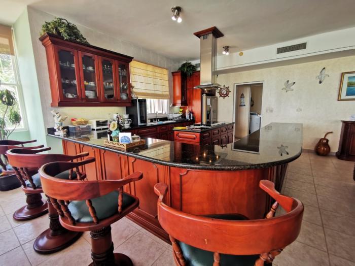 la propiedad cuenta con 4 amplias recámaras con baño privado, una recámara adicional de invitados o de servicio, y una sala-comedor de concepto abierto. la cocina está completamente equipada, con muebles de madera maciza de nazareno y sobres de granito. todos los espacios tienen vista al mar, incluyendo la enorme terraza con espectaculares vistas de la costa.