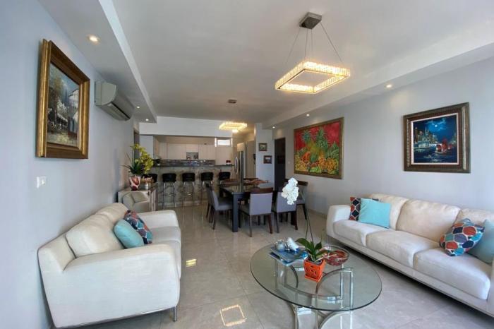Venta de apartamento ph harmony tower, san franciscoUbicado en la calle 73 san francisco muy cerca de restaurantes, farmacias, gimnasios, centros comerciales, colegios, hospitales, cerca del parque omar.apartamento de 4 recámaras, 3 baños, medio baño de visita,2 balcones, sala, comedor, cocina abierta con desayunador tipo bar, lavandería y pequeño cuarto de servicio con baño completo, 4 estacionamientos, depósito de 32 mt2 con muebles modulares, piso revestido con piso de porcelanato y ventanas. el edificio cuenta con planta eléctrica total, tanque de agua de reserva, área social completa dos piscinas una de niños otra de adultos, parque de juegos para niños, cancha multi uso con cancha de basketball y football, gimnasio, en la planta baja se encuentra el parque para perros.