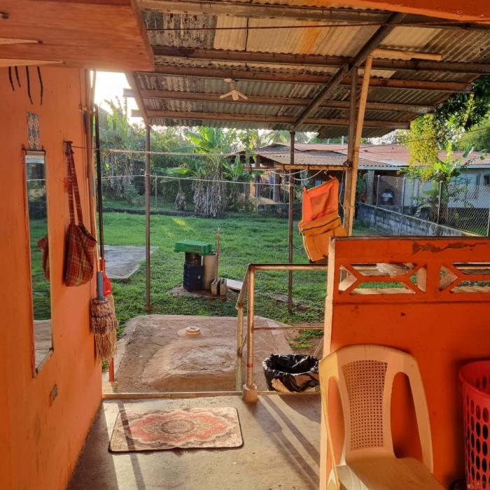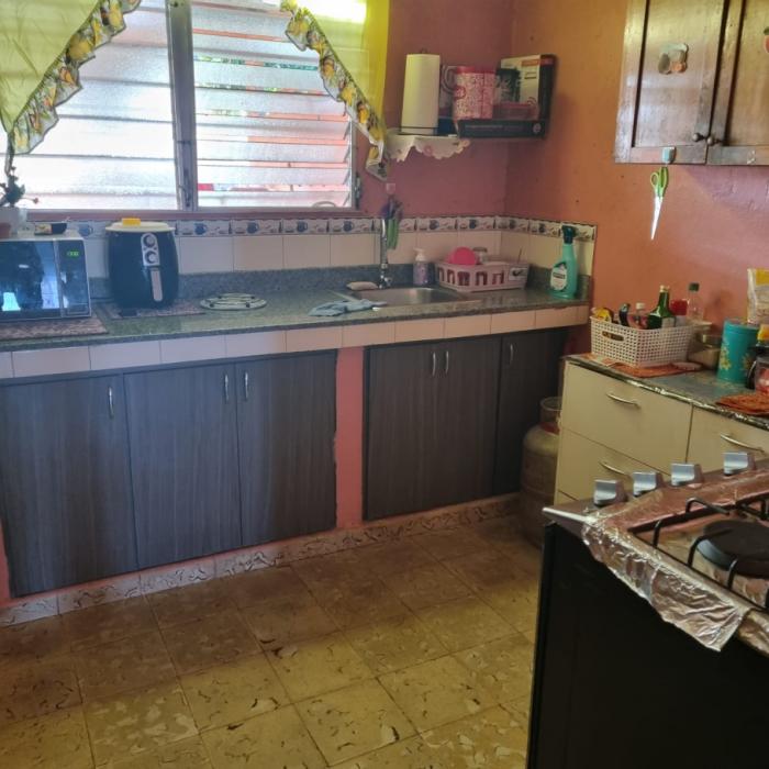 acabados similares a la vivienda principal: pisos de concreto a llana, cielo raso de foam y gypsum, ventanas con persianas y verjas de seguridad, paredes de bloques repellados y pintados.
