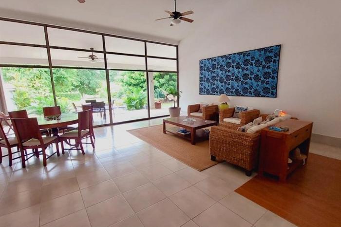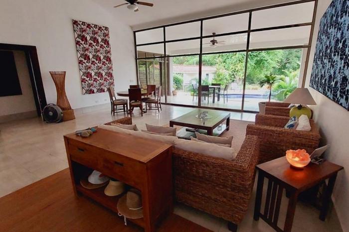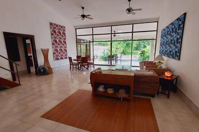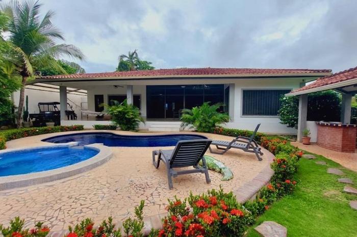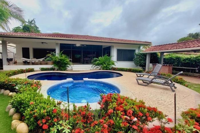 Venta de casa en coronado golf, chameEsta casa única y espectacular está ubicada en el camino de balboa dentro del club de golf coronado en un vecindario tranquilo y amigable con una vista increíble al campo de golf y la piscina desde la terraza. la propiedad tiene un total de 790 m2 de construcción en un lote de 1,163 m2.además, la casa tiene acceso directo al campo de golf. la propiedad está muy bien construida con un estilo moderno rodeada de naturaleza para la observación de aves y mariposas. tiene una gran terraza rebajada en la parte trasera con camas de jardín para el entretenimiento y el descanso. características de la propiedad: comedor y sala de estar de concepto abierto con increíbles vistas a la piscina y los jardines directamente desde el hall de entrada y también desde la cocina. cocina espaciosa y ventilada con mucho espacio de encimera y almacenamiento, además de un área de desayuno hacia el comedor. 5 habitaciones, cada una con su propio baño completo, más armarios. un amplio den o sala de televisión con su baño completo y acceso directo al patio de la casa. un loft-mezzanine encima de la cocina podría usarse como oficina con las hermosas vistas de la sala y del exterior con sus grandes ventanales hasta el techo. amplia terraza, jardín con árboles frutales. -área social con piscina y jacuzzi. -acceso directo al campo de golf, hoyo 7. agua de pozo y de la municipalidad, con un tanque de reserva adicional de agua.agua caliente.muebles y electrodomésticos incluidos.depósito e invernadero para jardinería.lavanderia independiente con lavadora y secadora nuevas de un solo uso + cuarto de empleados.bohío con área de bbq independiente (barbacoa weber incluida).sistema de seguridad, urbanización cerrada y cercada.así que, ¡no esperes más y no pierdas la oportunidad de venir a ver esta increíble propiedad de la que te enamorarás para convertirte en el nuevo propietario!