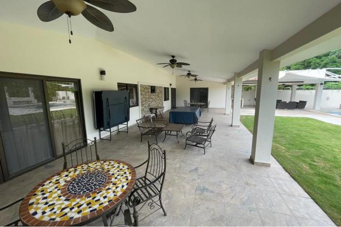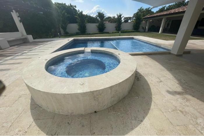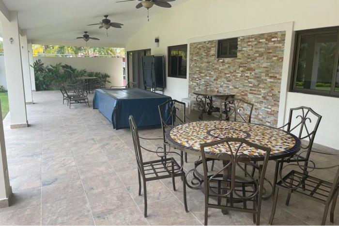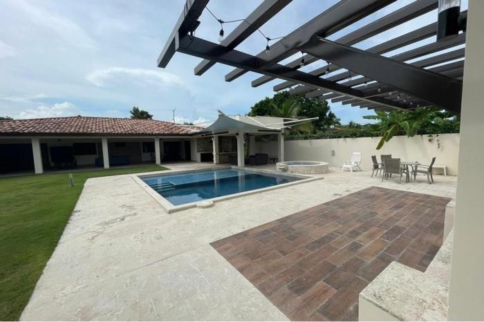 Venta de casa en coronado, panama.Residencia con excelente ubicación. cerca de hoteles, restaurantes, supermercados, estación de bomberos, centros comerciales, escuelas y a 10 minutos de la playa.propiedad cercada con áreas verdes, estacionamiento techado para 3 autos y portón eléctrico. cuenta con:3 recámaras. 3.5 baños.walk in closet.cocina abierta.amplio den. terraza.área de barbacoa.piscina con jacuzzi.gazebotambién cuenta con sistema de cámaras en circuito cerrado, alarma, agua caliente, bomba de agua con tanque de reserva, mesa de billar, mesa de ping pong, sistema de riego para jardín, luces decorativas en la propiedad.la propiedad cuenta con un anexo que comprende una pequeña casa, para el personal de servicio, con baño completo.