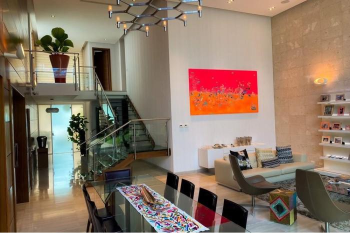 Venta de casa en p.h. costa esmeralda, costa surAmplia casa de 495m2 de construcción, completamente reformada y con acabados de lujo, 2 habitaciones en planta baja cada una con sus baños y 3 habitaciones en planta alta cada una con su baño, habitación principal con walking closet, 5.5 baños, salón comedor con doble altura, cocina completamente equipada con desayunador y den familiar, lavandería con deposito interno y 2 depósitos externos.lote de 629m2, piso de mármol, piscina interna, espacio para tres vehículos.año de construcción: 2010costos de mantenimiento $250.00precio de venta $840,000.00