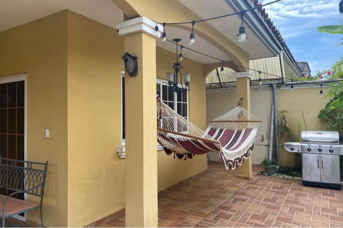 Venta de casa en rainforest, altos de panamáAmaneceres que te cautivarán con la frescura de los árboles, el cantar de las aves? atardeceres que te conquistan al ocultarse el sol detrás de las montañas, noches frescas y de brisa; esa es la experiencia que tendrás al vivir en esta bella residencia unifamiliar ubicada en residencial las huacas de rainforest village, ubicada a una altura de 120mts sobre el nivel del mar.de buen gusto y de estilo colonial mediterráneo, ofrecemos en alquiler o venta cómoda residencia unifamiliar.sus 450 m2 son eficientemente distribuidos en: nivel pbespaciosa sala ? comedor con fina decoración en luminariacomedor independiente o sala familiaragradable terraza techada con vistas al jardínjardínmedio baño de visita amplia cocina de 25m2 con doble acceso y salida al comedor, espaciosa alacenahabitación auxiliar, sala familiar u oficina con su baño completocuarto y baño de servicionivel 2sala de estar4 habitaciones (2 habitaciones en suite y 2 que comparten un tercer baño)3 baños completoshabitación principal con espacioso walk in closet (de 10 mts cuadrados) y cómodo baño con tina, ducha y doble lavamanosencantador balcón en la habitación principal con vista panorámica para disfrutar de mañanas y anocheceres que enamoran.residencial las huacas de rainforet village, es un conjunto residencial de exclusivas residencias, que ofrece garita de seguridad, parques infantiles, canchas deportivas, gazebo, salón de eventos y otras amenidades de gran disfrute familiar. ubicada estratégicamente muy cerca del corredor norte, vía puente centenario y la vía ricardo j. alfaro. a cinco minutos de ahí y hacia todos lados, así de privilegiada es su ubicación. además, está muy cerca al centro comercial alta plaza mall y centennial mall, con bancos, farmacias, colegios, lavanderías, supermercados, ferreterías y otros comercios de conveniencia y deleite siendo estos atractivos comerciales interesante para todos sus residentes. a 10 minutos de merca panamá y con salida directa al corredor rumbo a playas e interior del país,si estás buscando tu nuevo hogar, rainforest village debes considerar.