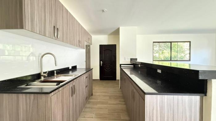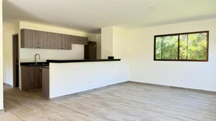 la vivienda cuenta con sala, comedor, cocina, cielo raso de gypsum, techo teja gala, incluye closet en las recámaras, muebles de cocina.