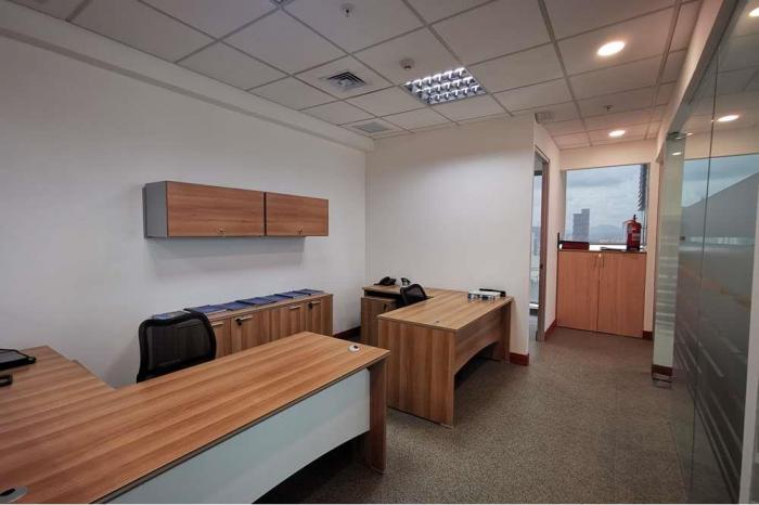 Venta de oficina en obarrio, torre atrium, 110 m2Venta de oficina en obarrio, torre atrium, 110 m2, us$275,000.00muy céntrica en el corazón de obarrio, en medio del sector bancario y rodeado de oficinas, hoteles, tiendas y restaurantes, se encuentra el atrium tower, moderna torre de oficinas que ofrece seguridad las 24 horas, estacionamientos para visitas y hermosas vistas a la ciudad. esta hermosa oficina, que también puede alquilarse parcialmente, consta de 7 ambientes divididos de la siguiente manera:área de recepciónoficina abierta con cuatro estaciones de trabajo3 oficinas privadas1 sala de reunionescocina1 bañola oficina cuenta además con:2 estacionamientos asignadosun depósito