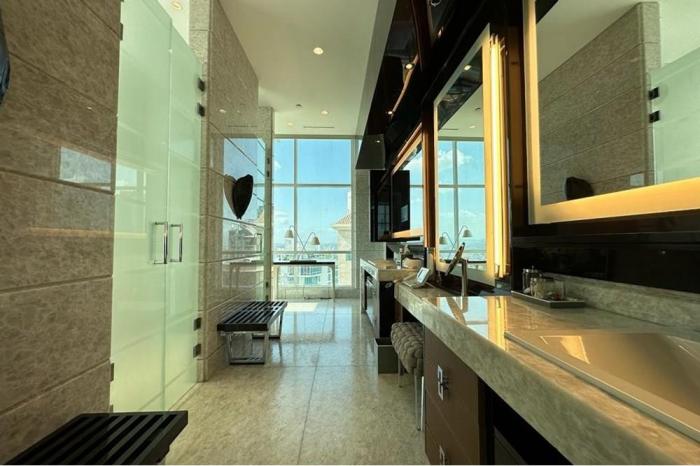 Venta lujoso penthouse en pacific point torre 200, punta pacificaVenta lujoso penthouse en pacific point torre 200, punta pacifica.precio: $3,300,000.00metraje: 1,300m2este espectacular penthouse es único y digno de ver! presente su oferta, el dueño está abierto y motivado!!espectacular apartamento de más de 1,300 m2 y dos pisos a la venta en pacific point 200. este apartamento único en su clase está ubicado en el altamente deseado sector de punta pacifica, frente al mar. elegantemente diseñado, este penthouse tiene más de $4.4 millones invertidos en mejoras tanto estructurales como de diseño, tales como acabados, iluminación, linea blanca y muebles de diseñador. si miramos la inversión inicial, este apartamento se está vendiendo a casi cincuenta centavos por cada dólar invertido, haciendo la oferta más atractiva en apartamentos de ultra lujo en ciudad de panamá. en cuanto entras al apartamento te asombrarán los magníficos techos de 6 metros de altura con ventanas de piso a techo que brindan vistas únicas hacia el océano pacífico y las islas de ocean reef. y este es solo el comienzo de la experiencia de lujo. el dueño no ha escatimado en nada, con hermosos pisos de mármol italiano, paredes forradas en madera exótica (tamo), iluminación a la medida de la marina, baños recubiertos en onyx y muebles de fendi casa completando la experiencia. te encantarán las cuatro habitaciones amplias, incluyendo la principal, que cuenta con elegantes walk-in closets tipo boutique para él y ella forrados en piel alcántara y una terraza privada. las cuatro terrazas privadas y balcones con un espacio total de 157 metros cuadrados te complacerán con espléndidas vistas hacia el océano y la ciudad en todas las direcciones. una de ellas incluso viene con tu propio jacuzzi, para que puedas admirar la vista desde las alturas de la ciudad de panamá. puedes ejercitarte en tu propio gimnasio privado, con casi $50,000 de equipo de alta gama incluido, mientras disfrutas del panorama. el penthouse combina durabilidad y elegancia en un estilo moderno que no pasará de moda. el proyecto de pacific point es el único en tierra firme de punta pacifica y punta paitilla que ofrece una comunidad privada frente al mar. está compuesta de casi una cuadra, donde los residentes pueden caminar, reunirse y disfrutar de las amenidades en una comunidad exclusiva. el proyecto ofrece un clubhouse elegante, áreas infantiles, una piscina infinita, canchas de soccer, racquetball y más, así como saunas separados para hombres y mujeres. a solo pasos de supermercados, farmacias, restaurantes y más, pacific point es un desarrollo de lifestyle que ofrece privacidad y estrictas medidas de seguridad gracias a su acceso controlado, seguridad 24/7 y más.